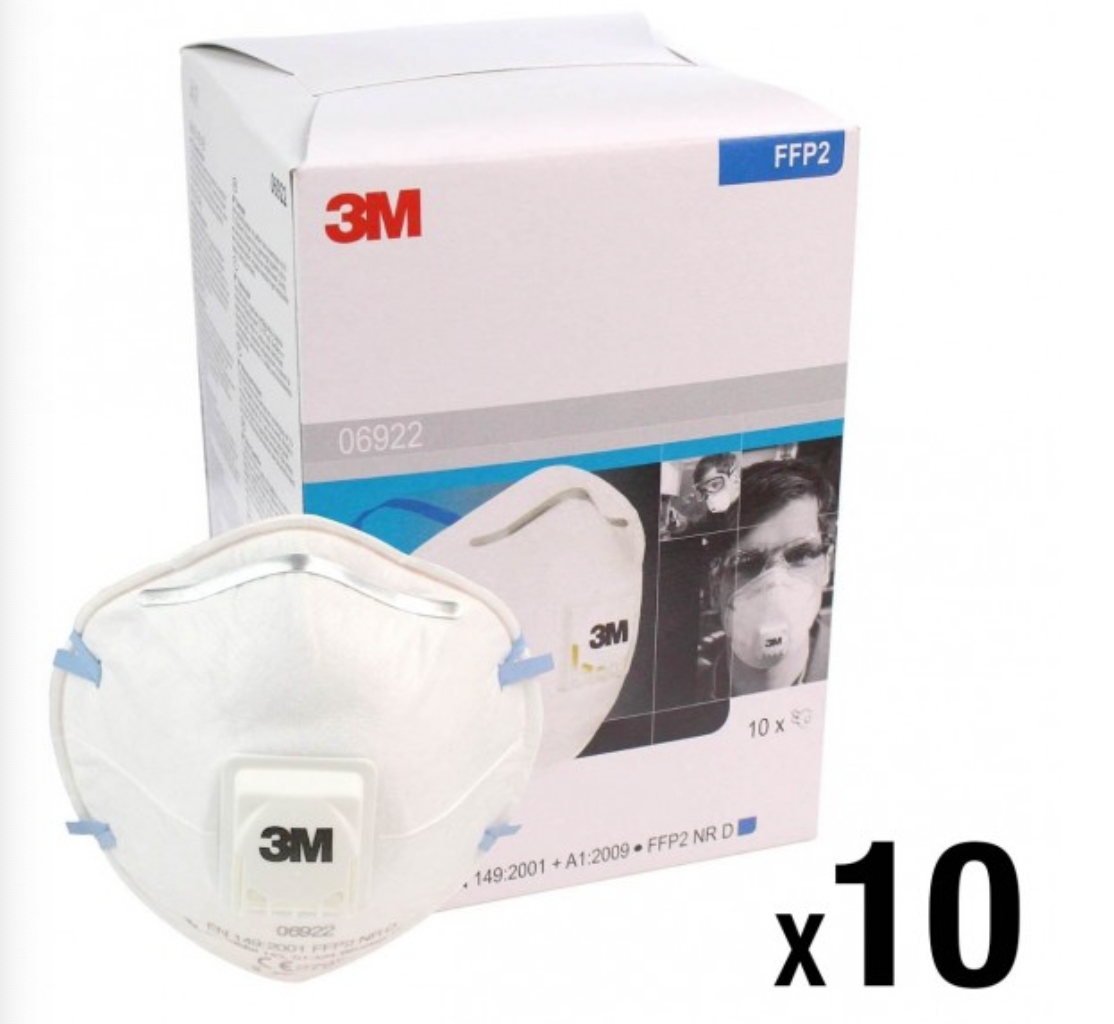 3M™ FFP2 Face Mask 06922 - Valved (Box of 10 Masks)