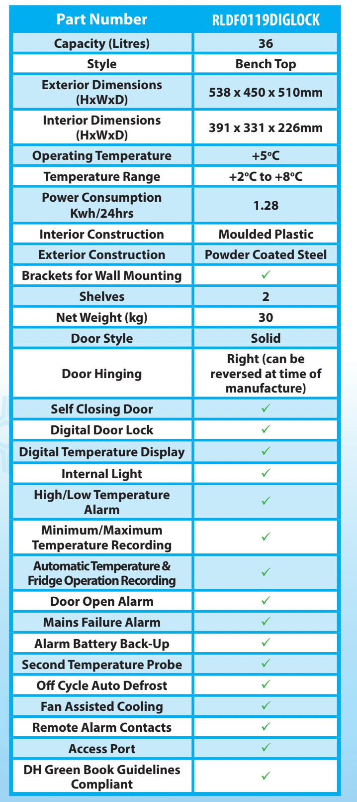 Labcold RLDF0119DIGLOCK pharmacy & vaccine refrigerator