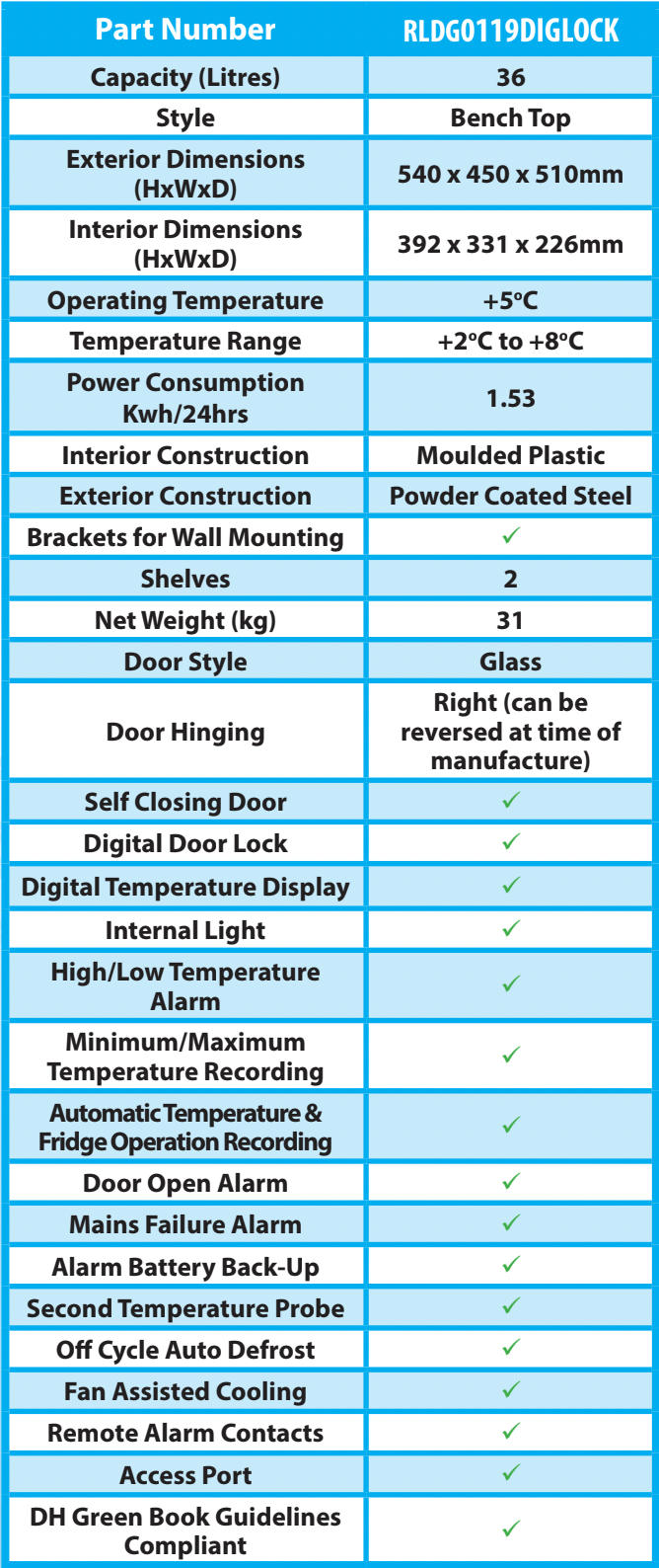 Labcold RLDG0119DIGLOCK pharmacy & vaccine refrigerator