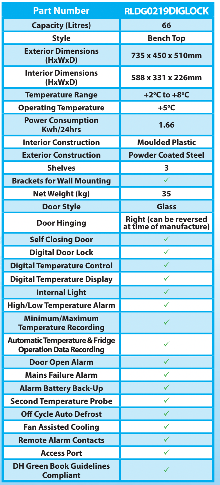 Labcold RLDG0219DIGLOCK pharmacy & vaccine refrigerator