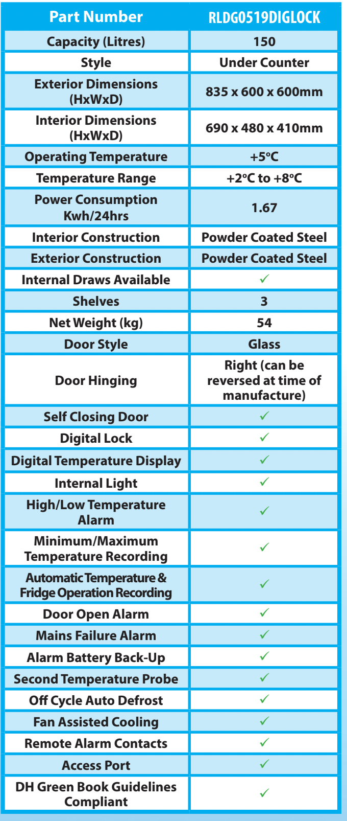 Labcold RLDG0519DIGLOCK pharmacy & vaccine refrigerator