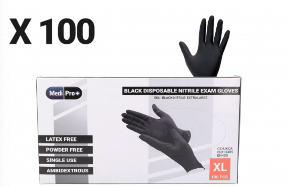 MediPro Black Nitrile Gloves - Box of 100