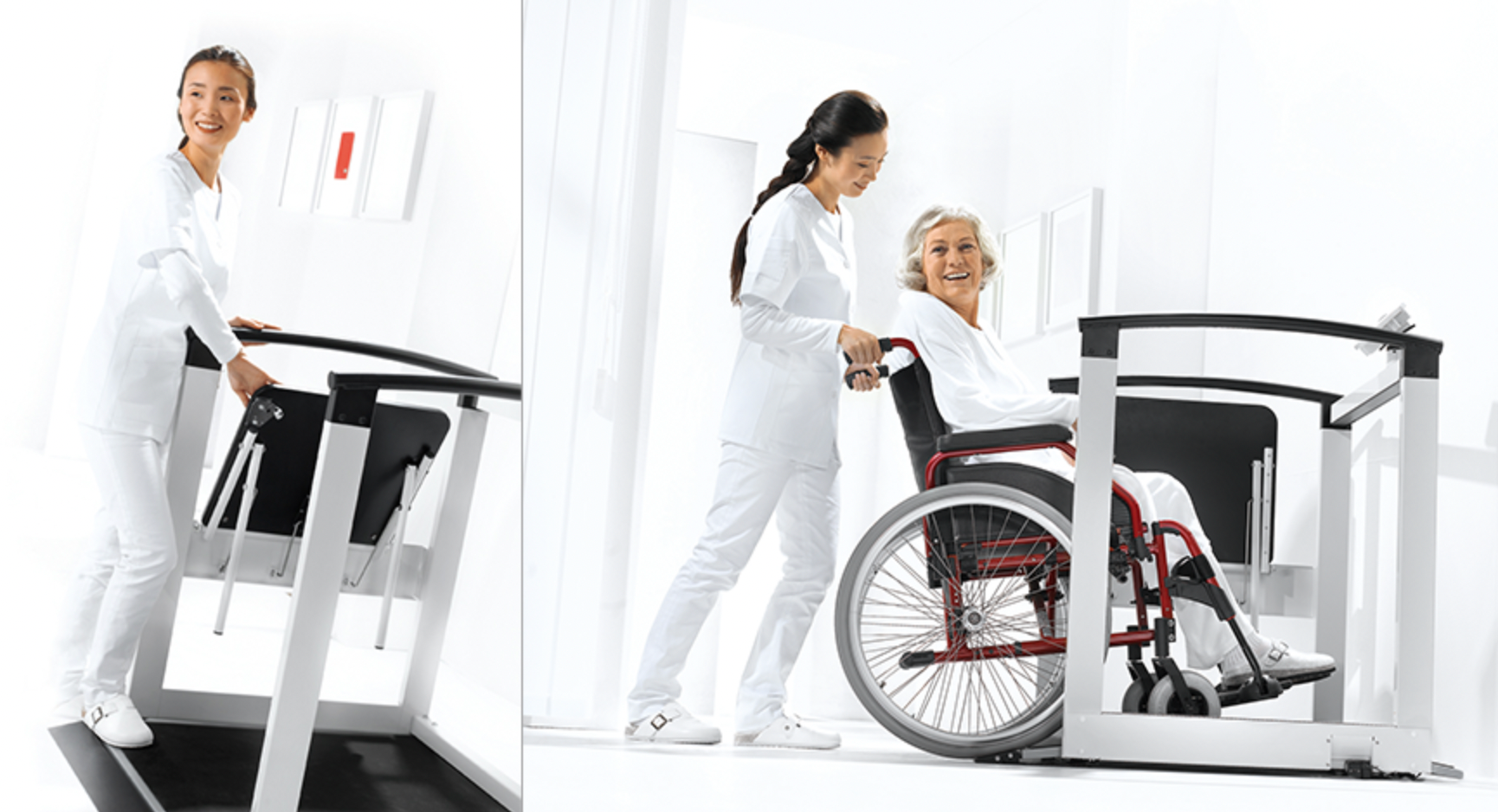 - Firmly anchored steel handrail on both sides serves as ideal standing aid