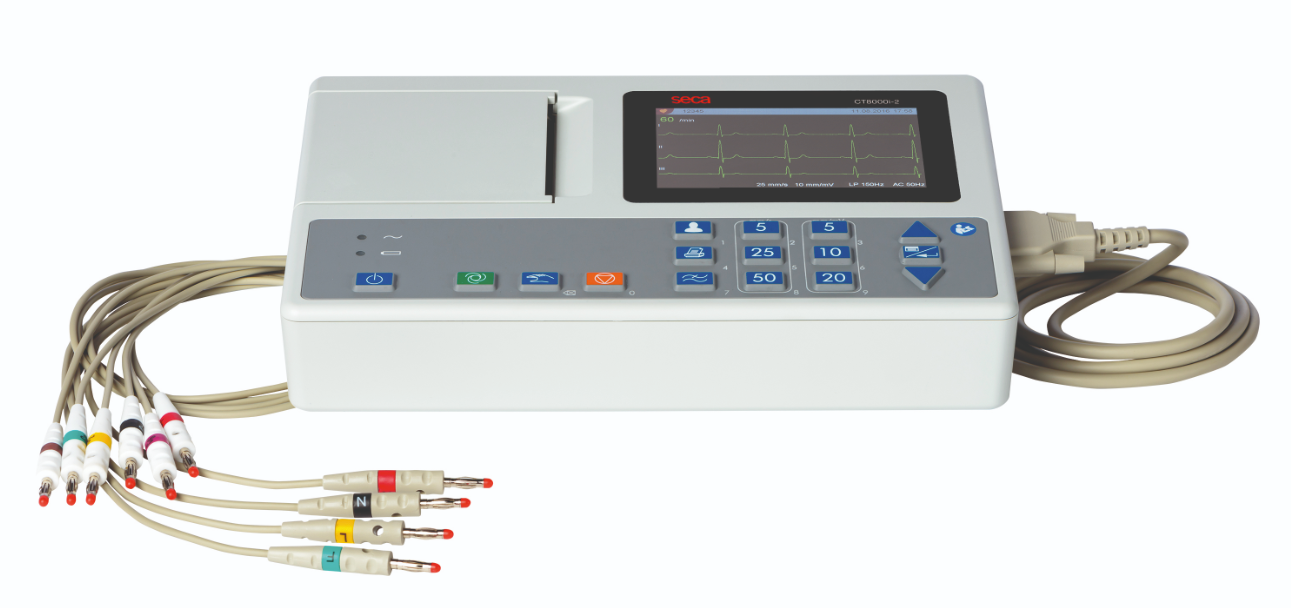 The seca CT8000i-2 is the 2nd generation of Seca's best-selling 12 lead ECG machine with an enhanced signal quality and newest interpretation algorithms. It is compact, portable and has a user-friendly design, that allows for quick, easy and reliable ECG acquisition. Just enter patient data, control signal quality, acquire ECG and print it with the integrated high-resolution thermal printer. Taking an ECG has never been easier.